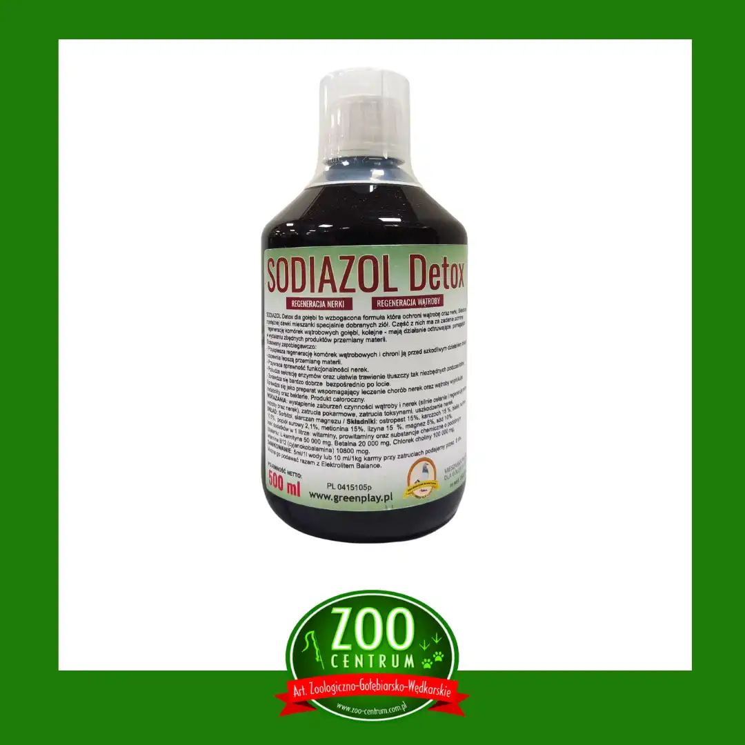 SODIAZOL Detox dla gołębi to wzbogacona formuła która ochroni wątrobę oraz nerki. Składa się z potężnej dawki mieszanki specjalnie dobranych ziół. Część z nich ma za zadanie ochronę i regenerację komórek wątrobowych gołębi, kolejne – mają działanie odtruwające, pomagające w wydalaniu zbędnych produktów przemiany materii.