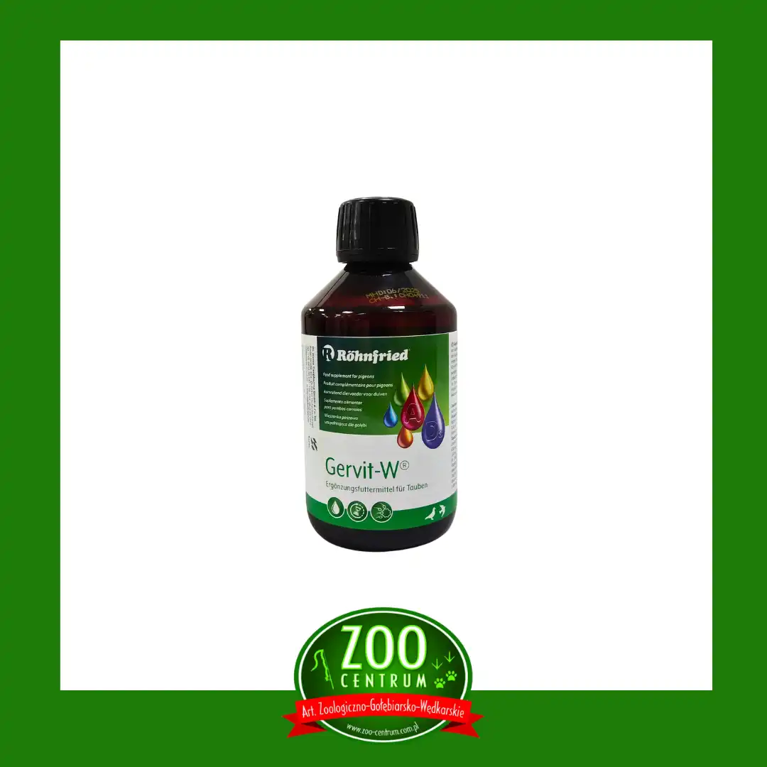 Gervit-W podaje sie w okresie lęgowym i lotowym 2 razy w tygodniu – 2 pełne nakrętki = 10 ml Gervit-W na 2 litry wody lub 1,5 kg karmy zbożowej. W pozostałych okresach roku wystarczy dawka aplikowana raz w tygodniu. W celu zaspokojenia większego zapotrzebowania na witaminy należy aplikować Gervit-W kilka razy w tygodniu. W okresie lotowym nie podaje się Gervit-W w dniu koszowania.